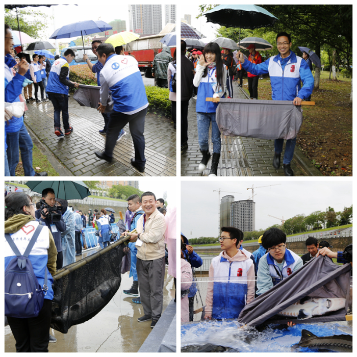 三峽青年志愿者們準時提前抵達活動現(xiàn)場,盡管下著小雨,但立刻投入到志愿服務工作當中,積極開展現(xiàn)場秩序維護、環(huán)保宣傳冊頁發(fā)放、放流鱘魚轉運、向熱心的市民耐心講解相關科普知識等工作。近3個小時的學習和服務活動當中,大家有序分工、各司其職,向當?shù)厥忻窈蛥⑴c活動的相關機構很好地展現(xiàn)了三峽青年的良好精神風貌。