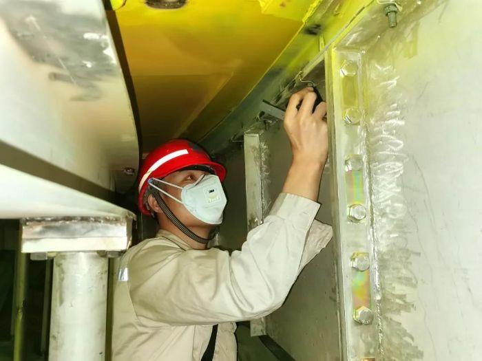 ▲白鶴灘建設者在檢查轉子緊固件。攝影:韓普昌